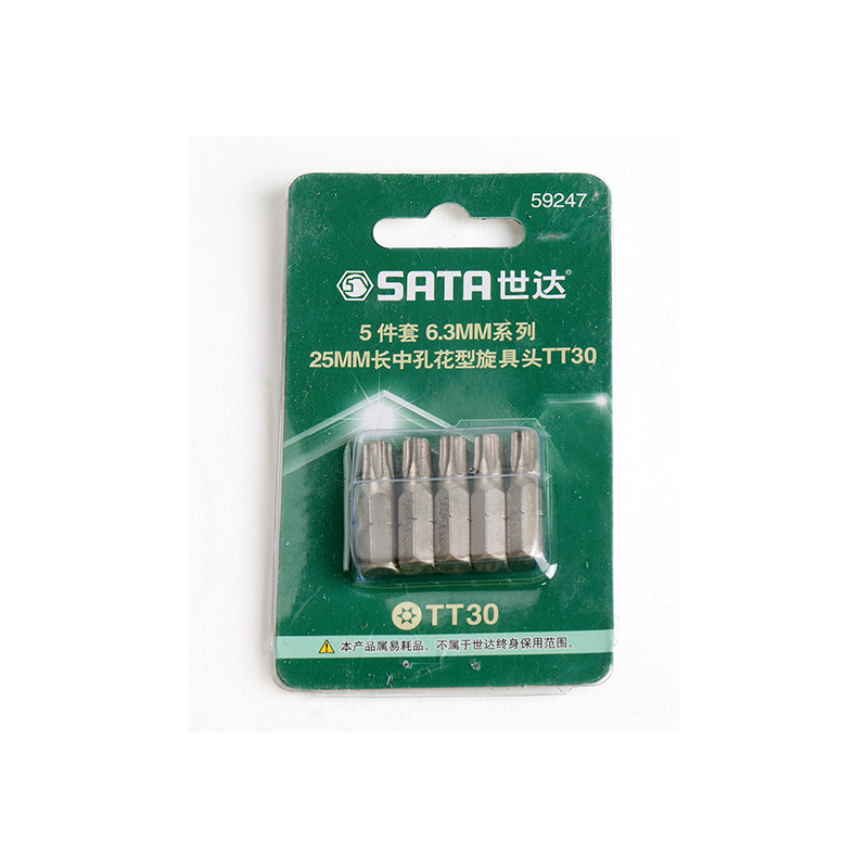 世達5件套6.3MM系列25mm長中孔花型旋具頭T25 |