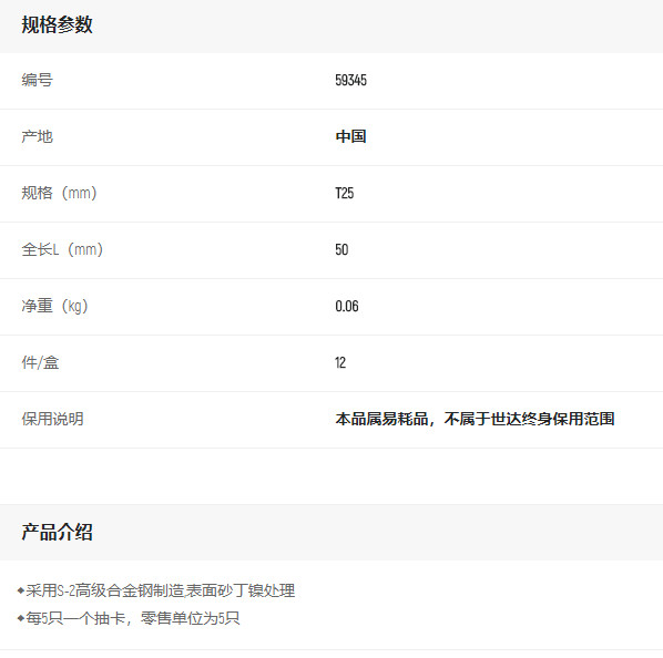 產(chǎn)品名字:世達(dá)5件套6.3mm系列50mm長(zhǎng)中孔花型旋具頭TT25