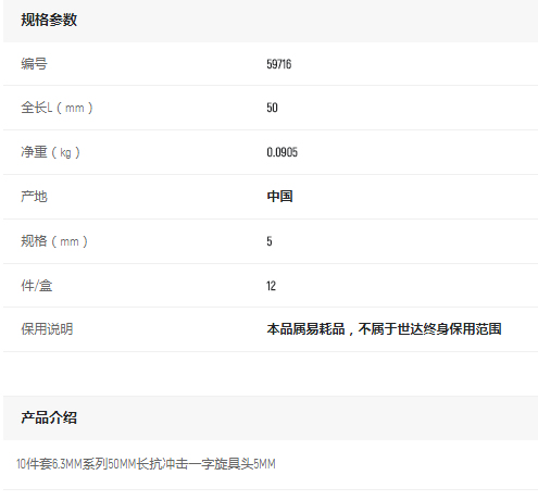 產(chǎn)品名字:世達(dá)10件套6.3MM系列50mm長(zhǎng)一字旋具頭5MM