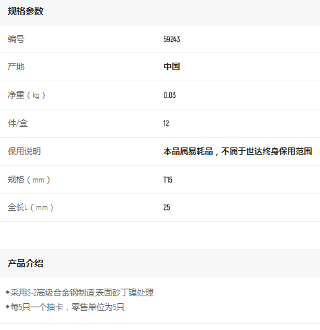 產品名字:世達5件套6.3mm系列25mm長中孔花型旋具頭T15