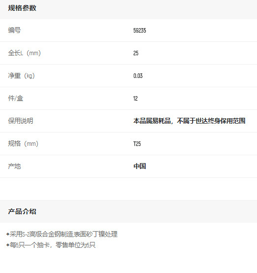 首頁>產(chǎn)品中心>螺絲批>旋具頭組套>世達5件6.3mm系列長花形旋頭T25