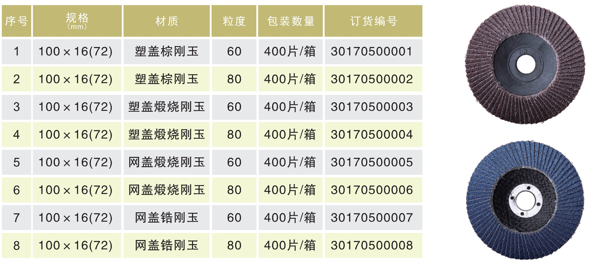 產(chǎn)品名字:東成百葉片網(wǎng)蓋煅燒鋼玉#60# 100x16x72