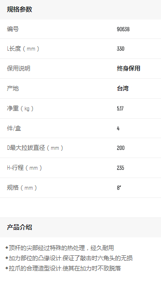 產(chǎn)品名字:世達(dá)3爪拉馬8寸