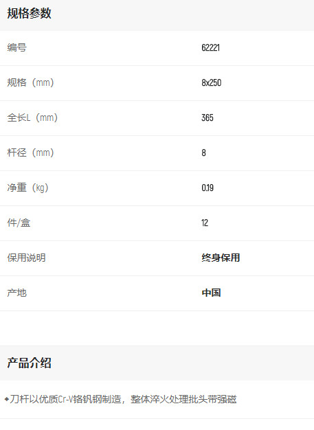 首頁(yè)>產(chǎn)品中心>螺絲批>一字螺絲批>世達(dá)A系列一字批8*250mm
