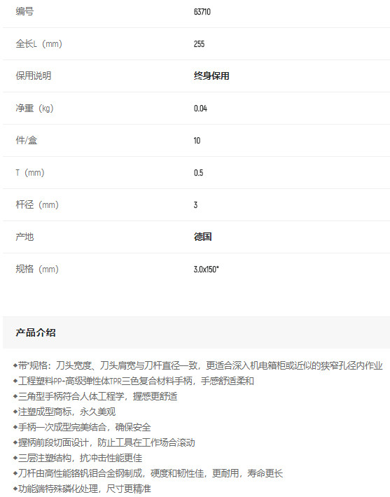 產(chǎn)品名字:世達G系列一字批3*150mm