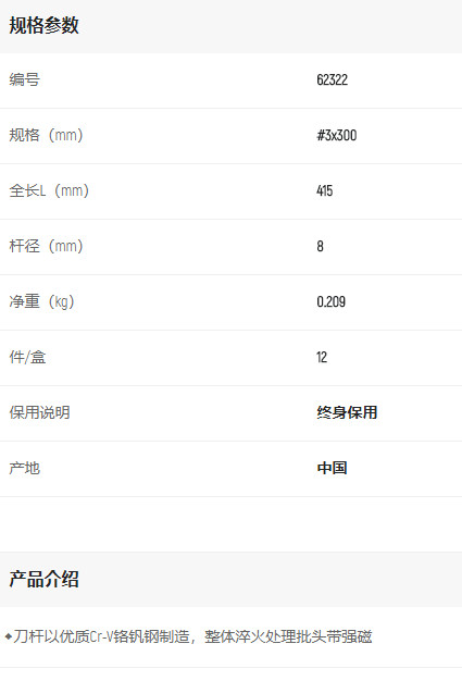 產品名字:世達A系列十字批#3*300mm