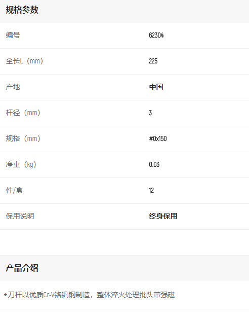 產(chǎn)品名字:世達(dá)A系列十字批#0*150mm