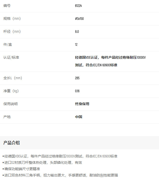 產(chǎn)品名字:世達T系列雙色柄十字絕緣螺絲批#3x150MM